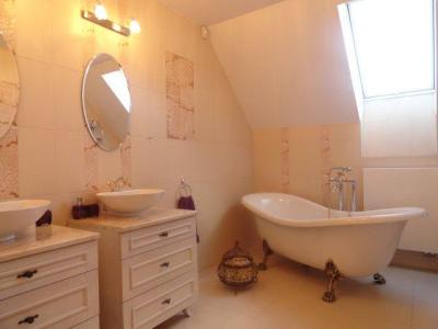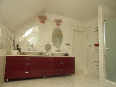Novostavba rodinné vily nedaleko Prahy s obytnou plochou 462 m2 se nachází na pozemku s krásným volným výhledem. Dům je stavěn do tvaru písmene U, kde uprostřed se nachází terasa přístupná z přilehlých místností. Stylový, vysoce komfortní dům zkolaudovaný v roce 2009. Vše ve vysokém standardu, použity velmi kvalitní materiály s důrazem na nízké nároky na údržbu. Podlahy z tvrdého dřeva - brazilská třešeň a teak, odolná dlažba. Krb - pískovec a matrix. Kuchyně se spotřebiči Miele. V přízemí vstupní prostor se dvěma šatnami, pět místností + kuchyně, koupelna, dvě toalety, komora s bočním zásobovacím vchodem, technická místnost. V patře šest místností, dvě koupelny, dvě samostatné toalety s bidety, tři šatny. Příjemný interiérový design. Vytápění tepelným čerpadlem. Centrální vysavač, kouřová čidla, elektronické zabezpečení. Na pozemku vlastní studna k zavlažování zahrady (závlahový systém) a využití užitkové vody, zahradní domek. Bazénový korpus 8x4m, příprava na nízkoenergetické vyhřívání.