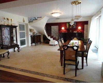 Novostavba rodinné vily nedaleko Prahy s obytnou plochou 462 m2 se nachází na pozemku s krásným volným výhledem. Dům je stavěn do tvaru písmene U, kde uprostřed se nachází terasa přístupná z přilehlých místností. Stylový, vysoce komfortní dům zkolaudovaný v roce 2009. Vše ve vysokém standardu, použity velmi kvalitní materiály s důrazem na nízké nároky na údržbu. Podlahy z tvrdého dřeva - brazilská třešeň a teak, odolná dlažba. Krb - pískovec a matrix. Kuchyně se spotřebiči Miele. V přízemí vstupní prostor se dvěma šatnami, pět místností + kuchyně, koupelna, dvě toalety, komora s bočním zásobovacím vchodem, technická místnost. V patře šest místností, dvě koupelny, dvě samostatné toalety s bidety, tři šatny. Příjemný interiérový design. Vytápění tepelným čerpadlem. Centrální vysavač, kouřová čidla, elektronické zabezpečení. Na pozemku vlastní studna k zavlažování zahrady (závlahový systém) a využití užitkové vody, zahradní domek. Bazénový korpus 8x4m, příprava na nízkoenergetické vyhřívání.